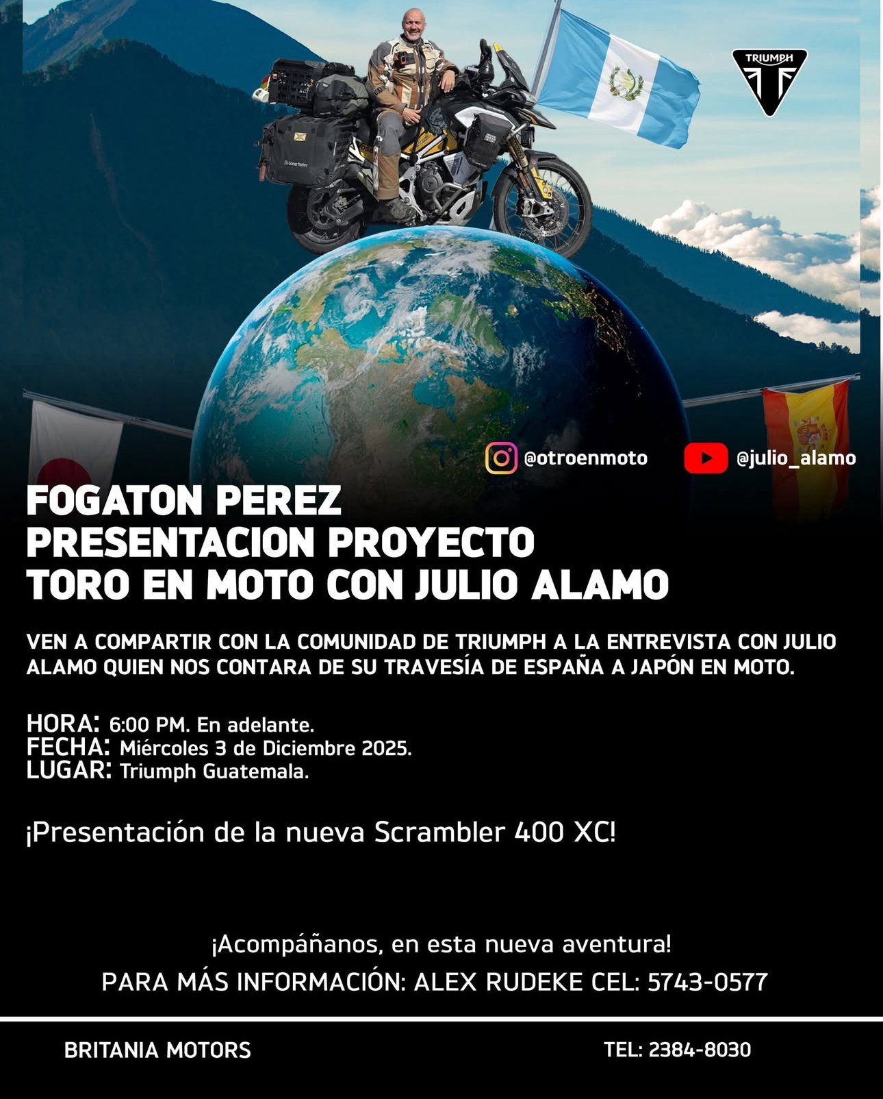 Las charlas y conferencias de viajes en moto de Julio Álamo están basadas en experiencias reales acumuladas a lo largo de miles de kilómetros por distintos países y continentes, combinando aventura, retos personales y aprendizaje en ruta.