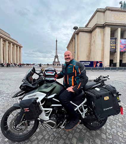 El domingo a las 9:30 AM salí desde las afueras de París. Aproveché a visitar el memorial a la Resistencia, los restos de la masacre de Oradour-sur-Glane, parar a darle un abrazo a mi amigo Txerra frente a la fachada del museo Guggenheim en Bilbao y desde ahí tomar rumbo hacia Reinosa con las indicaciones de otro gran amigo, Raúl, quien me ayudó desde la cama, a rectificar la ruta con el objetivo de esquivar la fuerte tormenta que azotaba parte del recorrido que había trazado la noche anterior. Después de 20 horas llegaba con la Triumph Tiger 1200 Rally Explorer al garaje de mi casa.