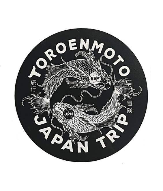 Pegatina de vinilo laminado JapanTrip con diseño exclusivo de dos peces koi, símbolo de perseverancia y aventura. Resistente al agua, a los rayos UV y perfecta para motos, cascos y equipamiento.